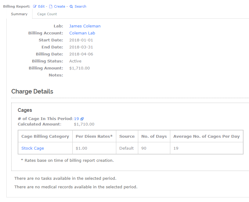 | Cage Per Diem Costs, Billing | |||||